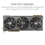 The TUF Gaming GeForce RTX 3090 has been stripped down and built back up to provide more robust power and cooling. A new all-metal shroud houses three powerful axial-tech fans that utilize durable dual ball fan bearings. Fan rotation has been optimized for reduced turbulence, and a stop mode brings all three fans to a halt at low temps.