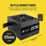 CORSAIR CV power supplies are ideal for powering your new home or office PC, with 80 PLUS Bronze efficiency guaranteed to continuously deliver full wattage to your system.