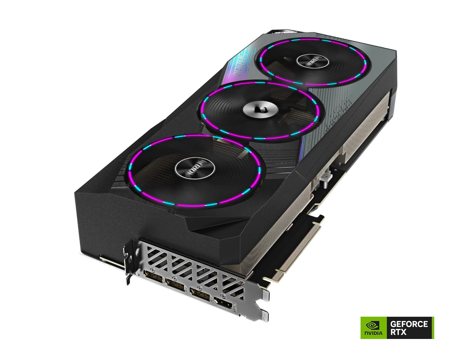 The WINDFORCE cooling system features three 110mm newly designed bionic shark fans, alternate spinning, 13 composite copper heat pipes, a large vapor chamber directly touches the GPU, 3D active fans and Screen cooling, which together provide high efficiency heat dissipation.