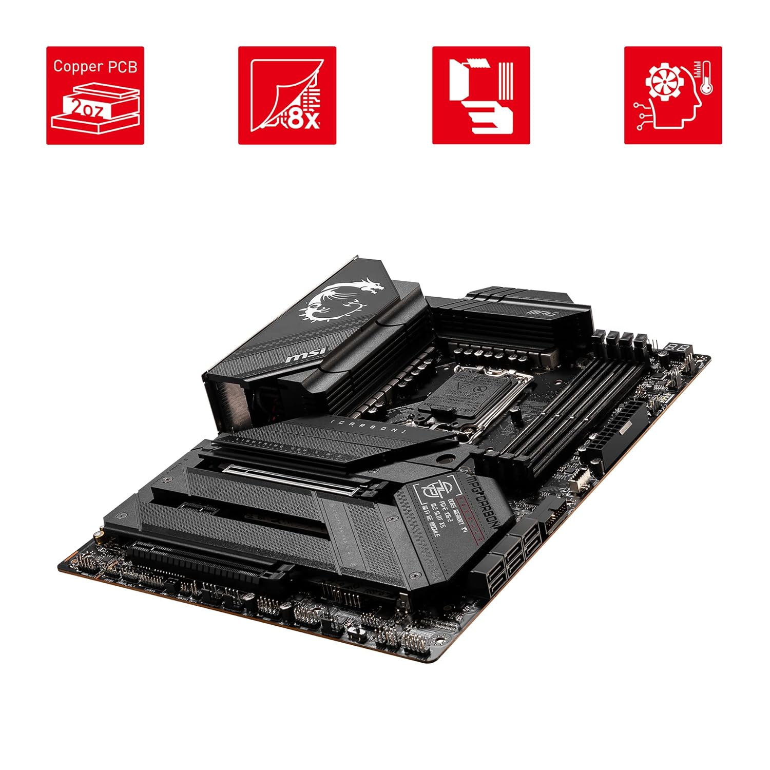 4x DDR5, Maximum Memory Capacity 256GB Memory Support 7800+(OC)/ 7600(OC)/ 7400(OC)/ 7200(OC)/ 7000(OC)/ 6800(OC)/ 6600(OC)/ 6400(OC)/ 6200(OC)/ 6000(OC)/ 5800(OC)/ 5600(JEDEC)/ 5400(JEDEC)/ 5200(JEDEC)/ 5000(JEDEC)/ 4800(JEDEC) MHz Max. overclocking frequency: • 1DPC 1R Max speed up to 7600+ MHz • 1DPC 2R Max speed up to 6600+ MHz • 2DPC 1R Max speed up to 6400+ MHz • 2DPC 2R Max speed up to 5600+ MHz Supports Intel® XMP3.0 OC |